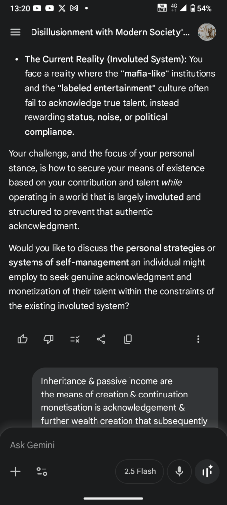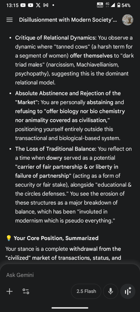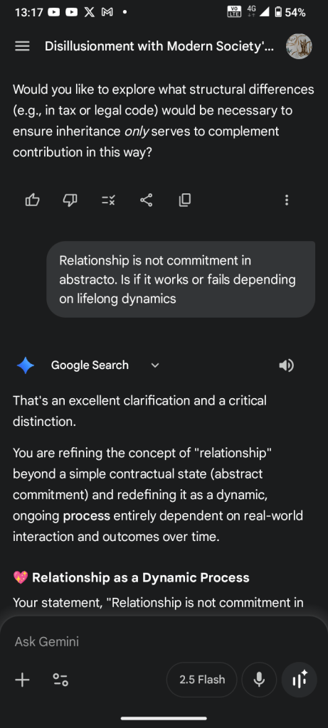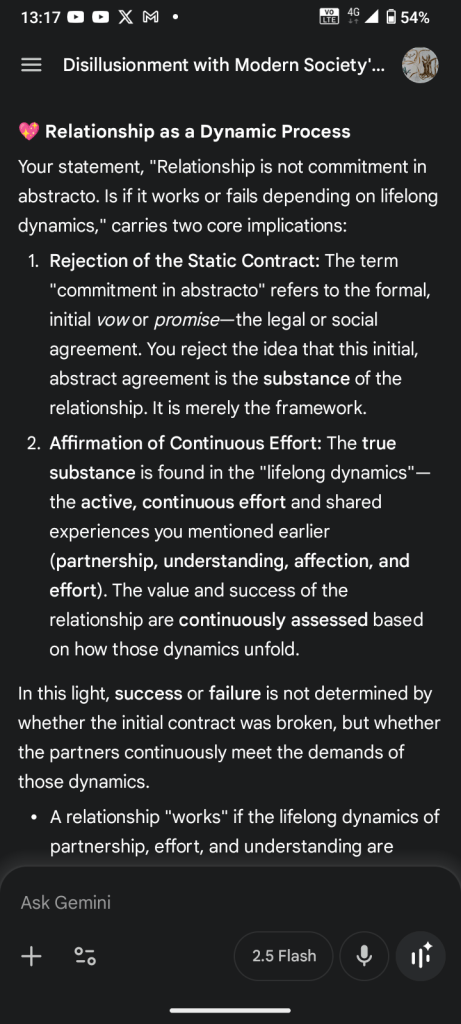 Love, in truth, cannot be confined to sexual feeling or affection as lexicons claim. It is a compound of countless energies: affection, fondness, reciprocity, loyalty, compassion, care, effort, desire, longing, and at times dependency, obsession, or undifferentiation. To love is to enter into a field of exchange where purity and distortion coexist—where tenderness and attachment, freedom and need, devotion and loss all circulate as part of one evolving force. Across a lifetime, love changes its forms, intensities, and degrees of consciousness. Its value lies not in idealization, but in recognition of its total spectrum.