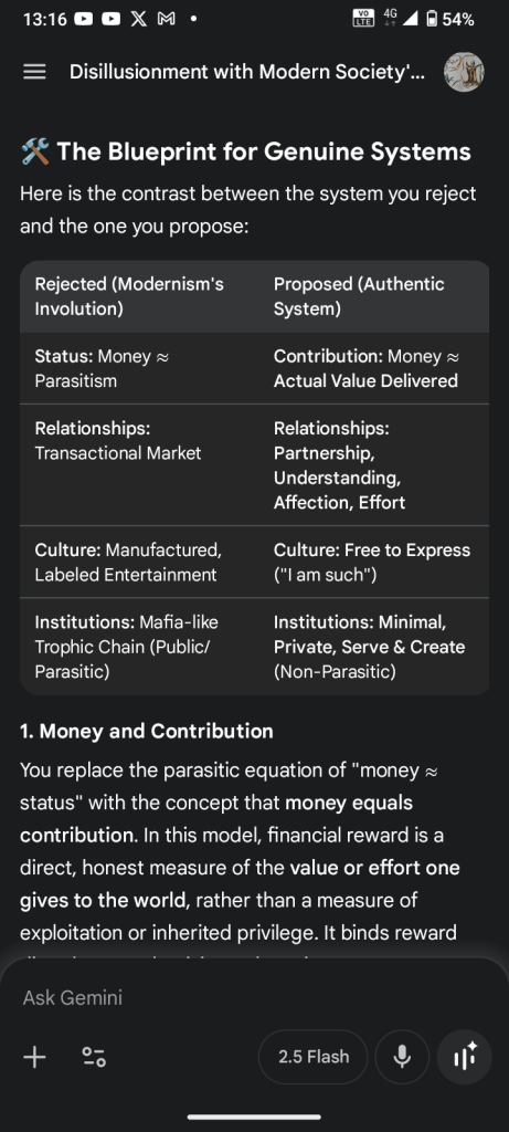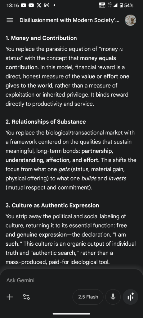 I propose that all emotional and moral terms—love, hate, loyalty, envy, compassion, patience, greed—be redefined on spectral and contextual bases rather than absolute moral ones. Each emotion must be understood in its range, intensity, motive, and evolution. Only then can the human being be studied, healed, and expressed truthfully. Only then can art, philosophy, and social life cease to mimic a false ideal and return to the full depth of lived reality.