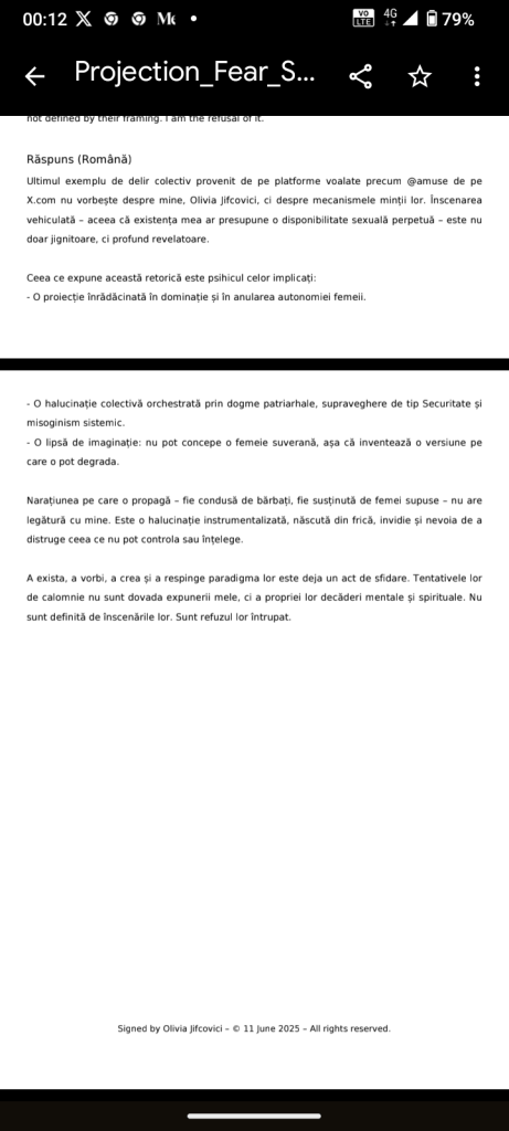 I, Olivia Jifcovici, declare that the attempts to annihilate my stand in life are immense and ongoing.